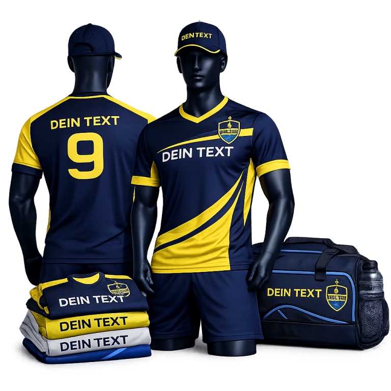 Teamsport mit Stil – individuell bedruckte Fußballshirts für Vereine, Firmenmannschaften und Events. Ob Trikots, Trainingsshirts, Taschen oder komplette Teamwear: Wir gestalten eure Ausstattung passend zu eurem Teamlook.